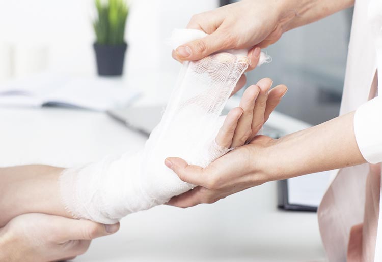 キズの範囲が広かったり、深部にまで至っていたりする場合は、早めのご受診をお勧めします。傷口にまだ異物が残っている場合は、ピンセットなどで除去したり、より確実に取り除くため、局所麻酔を行ってブラシで擦り取ったりする場合もあります。それにより傷口が広がったり出血したりしますが、化膿を予防するためには重要な治療です。その後は傷口にフィルムなどの被覆材をあて、乾かないようにし、治癒を促します。